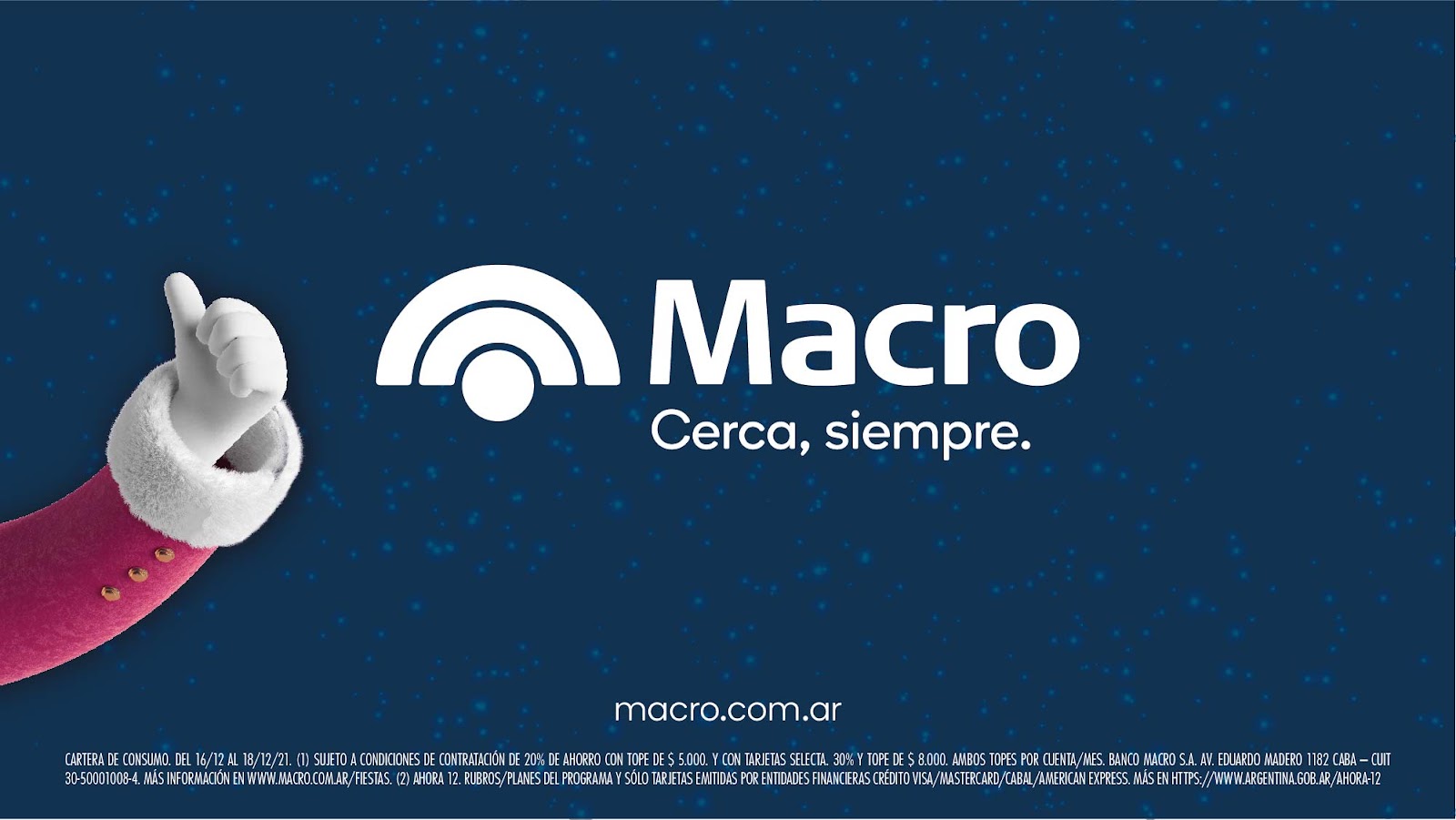 Hasta el 20 de diciembre pagando con Tarjetas de Débito y Crédito Macro en comercios adheridos de electro, tecnología, home y deco, indumentaria, farmacias y perfumerías habrá 20% de ahorro.